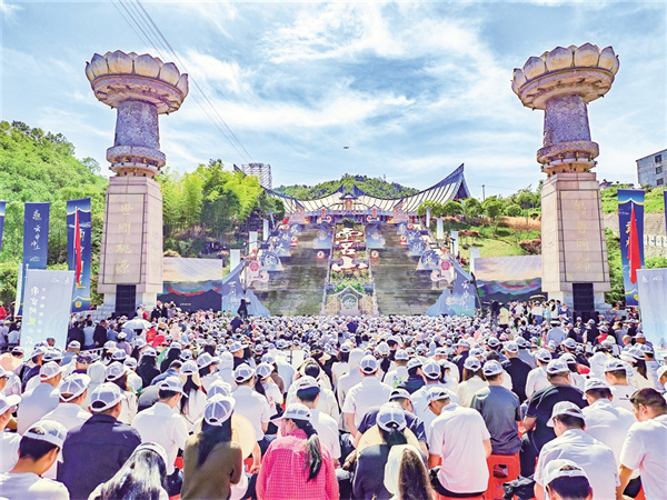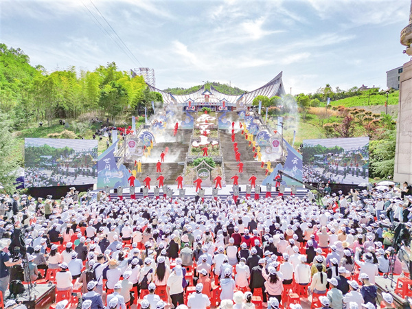 暮春的南宮山,蒼翠浸染。在悠揚的《神奇美麗南宮山》旋律中,活動正式啟幕,《序章·天門啟道》《天玄·問道山河》《地杰·武韻巴人》《和鳴·萬象共生》四大篇章層層遞進。伴隨著激昂的音樂,國樂表演《刀劍如夢》、竹海劍影《笑傲江湖》、巴人武韻《虎鈕錞于》、武術《天地人和》、舞+武《舞武對弈》等節目依次出場,活動現場鼓點如雷,舞者們騰空而起,剛猛的武術招式與充滿力量感的戰舞動作交織,每一次騰躍,都將現場觀眾的熱血與激情點燃。