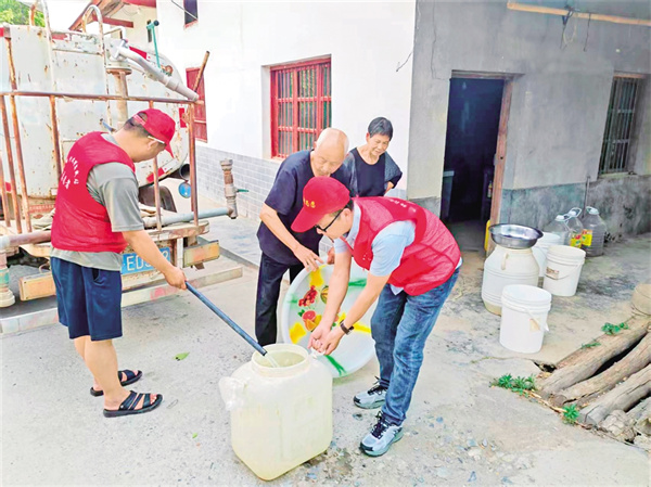 5月20日,嵐皋縣藺河鎮和平村的一處院落里,村民余井貴望著鎮人大代表李鵬與送水志愿者李增歡等人駕駛送水車而來,緊鎖的眉頭終于舒展,喃喃道:“哎呀,小李他們又來送水了!”