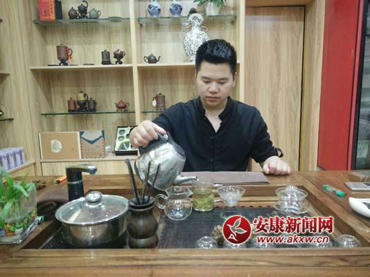 安康新聞網訊(通訊員 廖霖)茶香四溢,意蘊悠遠。木質桌椅,精致的茶具,舒適的環境,古色古香的裝潢。手腕一停一放之間,橙黃帶綠的水柱注入杯子,陜南巴山綠茶……