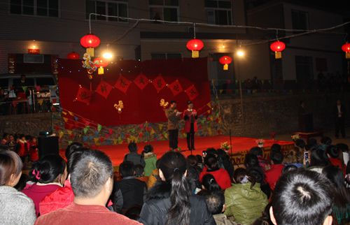 “新年好啊,新年好啊,祝福大家新年好……”馬年大年初一晚上,嵐皋縣四季鎮月壩村四組的籃球場上,人聲鼎沸,燈火通明,輕松歡快的兒童歌曲《新年……