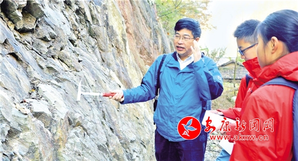 秦嶺峽谷樂園負(fù)責(zé)人林晉炎正在給研學(xué)的學(xué)生講解秦嶺的地質(zhì)構(gòu)造