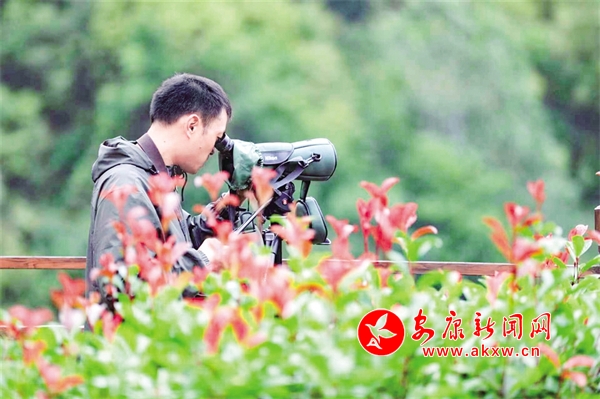李夏利用專業望遠鏡觀察朱鹮HJR安康新聞網