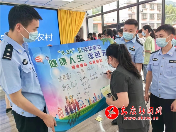 活動以歌舞、三句半、詩歌朗誦、禁毒知識有獎問答、觀看禁毒短視頻等多種方式呈現。禁毒民警用方言演繹的三句半《毒品害己又害人》,形象生動地闡述了毒品的危害,贏得了現場觀眾的陣陣掌聲;社區姐妹花舞蹈隊活力四射的健身舞《花開無毒》,展現了對美好生活的向往,遠離毒品健康人生煥發的蓬勃激情和生命力;配樂詩朗誦《讓生活更美好》呼吁我們共同攜起手來用愛喚起希望,用心抗拒毒魔;一曲《我相信》將活動引入高潮。整個活動過程中還穿插了毒品知識搶答、“健康人生 綠色無毒”簽字儀式,觀看禁毒宣傳短片“秦小尉”3D動畫、MG微視頻等互動環節,在主持人帶領下的“拒絕毒品 從我做起”禁毒宣誓活動更加彰顯了全社會群眾參與禁毒人民戰爭、打贏全面禁毒人民戰爭的信心和決心。