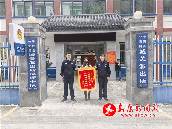 本網訊(通訊員 伍沛杰)10月7日,寧陜縣城關鎮轄區一群眾將一面印有“人民警察為人民 熱心幫助暖民心”的錦旗送到寧陜縣公安局城關派出所民警手中,對民警及時幫助其找回手機表示感謝。