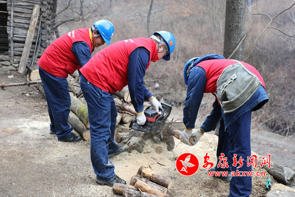 “是這個燈不亮嗎?除了這個燈之外,還有沒有其他的故障情況?”3月4日上午,廣貨街供電所工作人員一來到獨居老人史進來的家中,就對用電設備、線路的具體情況進行詢問、了解。前夕,寧陜公司廣貨街供電所對沙溝村用電客戶進行整體摸排檢查,針對群眾存在的用電問題,組織供電所工作人員進行集中走訪解決。工作人員從中了解到,史爺爺常年獨自居住,冬天基本靠砍柴生火取暖。在了解了這一情況后,工作人員立刻行動起來,對史爺爺家中用電設備、開關以及線路進行檢修、更換,并幫助史爺爺打掃房間。來到后院,映入眼簾的是一堆加工到一半的木柴,“史爺爺,這些柴我們幫您劈吧。”說罷,工作人員拿起地上的電鋸,齊心協力幫助史爺爺將剩下的木材劈好,并挪到遠離灶口的安全位置,以免發生火災。