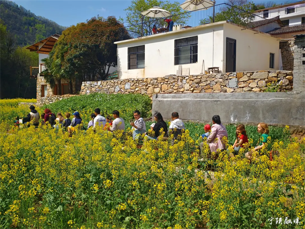 漁灣村位于寧陜縣城以南,距離縣城約11公里。這里依山傍水,景色秀美,已建成鹿柴山集精品民宿、稻田小火車等項目,并打造出朱鹮保育稻田、陜南鄉村田園等自然人文景致,有著豐富的生態資源和深厚的文化底蘊。清明時節,正是油菜花盛開的季節,田間地頭金黃一片,吸引了眾多游客前來觀賞。d7W安康新聞網