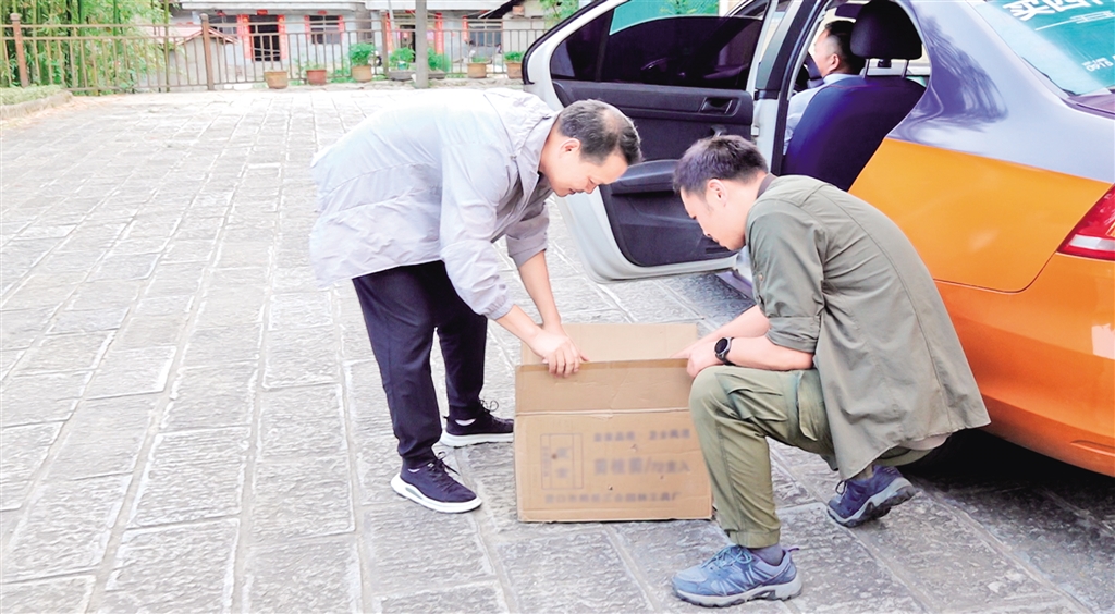 漢陰縣林業局相關負責人將朱鹮送到寧陜縣朱鹮野化放飛基地管理站。dDE安康新聞網
