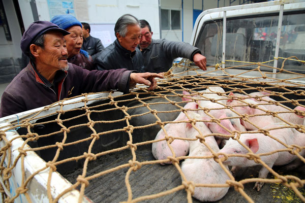 3月7日,花石村的貧困戶正在領取免費豬仔安康新聞網訊(通訊員 楊寧)“今年開年后,鎮上和部門的干部多次來我家。先是到我家來了解情況,春節還給我們送來了米……