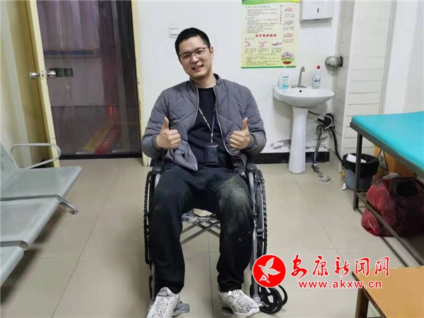 急診室內,平利縣公安局巡特警大隊副大隊長陳彥臻正坐在輪椅上,渾身都是泥巴,妻子過年為他置辦新衣也成了“開口笑”?吹铰動嵹s來已經紅著眼眶的妻子后,他故作輕松地笑著豎起了兩只大拇指,本意是想逗妻子笑,沒想到卻把妻子逗得哭出了聲,妻子邊哭邊數落:“沒見過你這樣過年的,把自己過到輪椅上去了!”一時間這位有著“硬漢”霸稱的年輕特警竟像個孩子一樣手足無措。