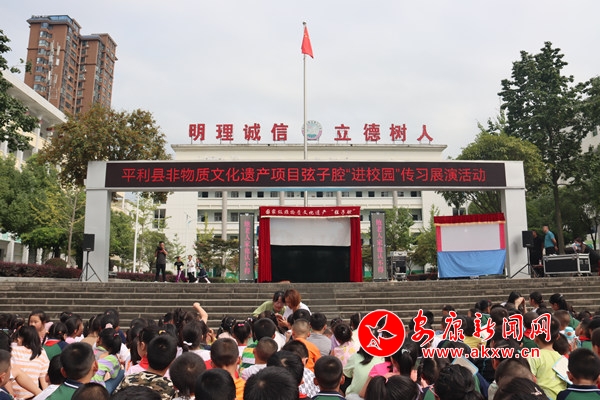 9月3日,平利縣國家級非物質文化遺產保護項目“平利弦子腔”牛王班社走進平利縣城關三小,為兩千余名師生現場傳習展演。當天,老藝人們為現場師生表演了傳統劇目《真假美猴王》和《戰長沙》。(通訊員 陳少乾)emy安康新聞網