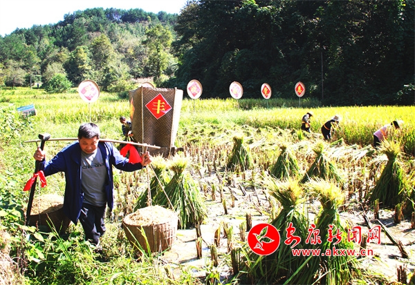 本網訊(記者 張喬)9月21日,平利縣西河鎮女媧山村金竹溝原生態水稻田里熱鬧非凡,飽滿的谷穗壓彎了稻桿,500余畝原生態水稻將在當天開鐮收割,以此慶祝 “豐收節”的到來。