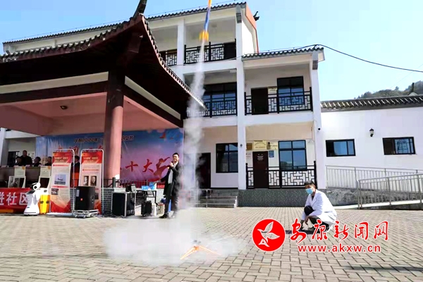 活動現場設置了科技文化展板、科普“大篷車”體驗以及機器人互動表演等環節。工作人員向前來參加活動的當地群眾、鎮村干部和人大代表、政協委員們展示了“火箭發射”“冒煙的餅干”“無灰燼的燃燒”等一系列豐富多彩的科普實驗和展品,蘊含數學、物理學、聲學和光學等科學知識。
