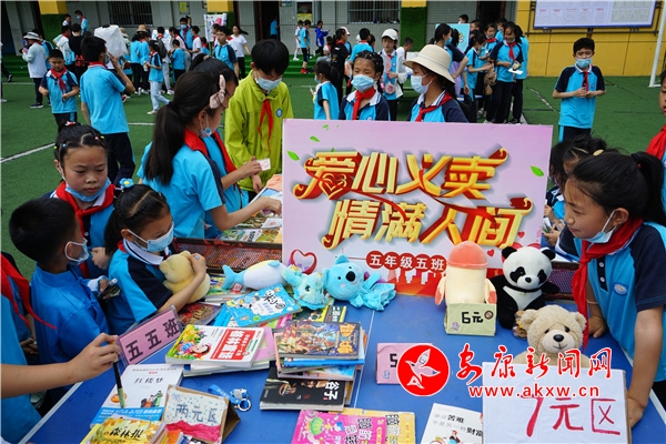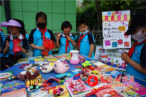 本著“分享、體驗、環保、感恩”的理念,6月1日下午,學校舉行了“跳蚤市場”活動。學生把家中閑置文化用品、玩具、圖書等拿到“交易市場”來賣,或與同學以物換物;顒蝇F場人頭攢動,宣傳海報各具特色,貨物琳瑯滿目,孩子們扮演起“商家”角色,用便宜的定價、買一贈一、打折、抽獎等方式,將自己閑置的物品交易出去,真正實現變廢為寶,培養孩子節約資源、愛護環境的意識,整個活動有序有趣;顒咏Y束后,學校將開展“校園義賣、愛心捐贈”活動,引導學生體驗通過自己的努力去幫助需要的人,懂得奉獻愛心、關愛他人。