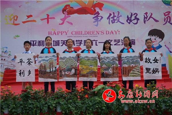 “六一”當天,一幅幅色彩明快、稚趣盎然的書畫作品,或懸掛樹上,或靠立舞臺前,或豎立在操場四周,把文藝匯演現場裝扮得十分美觀。書畫展吸引了一群群學生進行觀看、欣賞,贊嘆聲不絕。