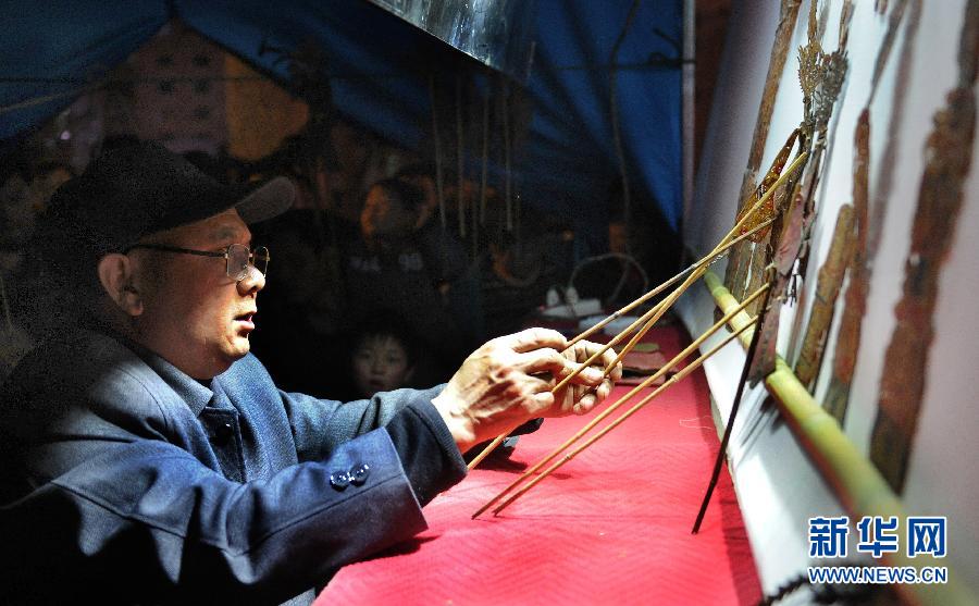 3月15日,平利縣國家非遺文化傳承人吳承權(quán)在縣城中心廣場(chǎng)為群眾表演弦子腔。新華社記者 陶明 攝