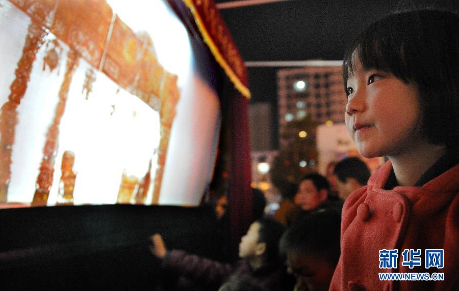 3月15日,一位小朋友正在觀看弦子腔表演。新華社記者 陶明攝