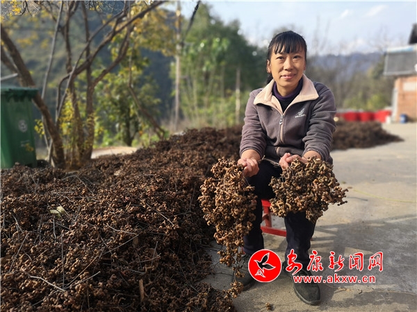 余順勇是廟梁村三組的釀酒大戶,有著16年的釀酒手藝,夫妻倆每年都要新栽植一些拐棗苗,如今能產拐棗的大樹就有140余棵。夫妻倆在家務農釀酒,家里2位老人在縣城開店賣酒,因為酒香醇正名氣大,生意興隆。今年,余順勇雇傭了7個勞力,用了38個工,打了9天拐棗,才做足了前期釀酒準備。