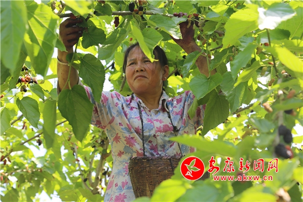 以“滄海桑田”聞名的明星村種植桑樹上千余畝,其中果桑面積占有300余畝,盛果期的果桑樹掛果量可達2500斤每畝。五月正是桑葚采摘上市的時候,果園里到處都能看到農戶們忙著采摘成熟桑葚的身影。據了解,這些農民都是附近的村民,他們將桑葚采摘后送往加工廠,每斤桑葚能賺1元錢,手腳麻利的村民一天能摘上百斤,也算是一筆可觀的收入。