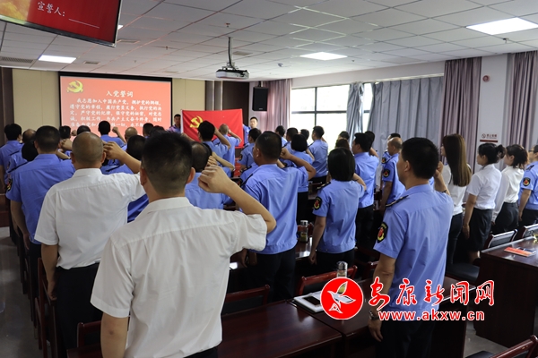 觀看完畢后,全系統64名黨員同志懷著無比激動、興奮和喜悅的心情,面對黨旗,再一次舉起自己的右手,莊嚴宣誓:“我志愿加入中國共產黨,擁護黨的綱領……”,錚錚誓言,句句千鈞,鏗鏘有力的聲音傳遞出每一名市場監管系統黨員同志對黨的絕對忠誠,對祖國會更加繁榮富強的堅定信念。hzH安康新聞網