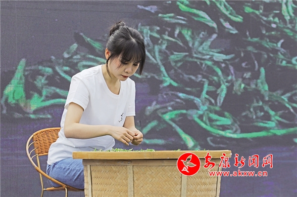 隨著舞蹈《踏春采茶》律動的節奏響起,活動正式拉開了序幕。背景大屏里,檔山村民們采茶忙的身影錯落有致。鏡頭拉近,一雙雙靈巧的手在茶樹枝丫間上下翻飛,竹簍里的綠芽帶著春天的無限生機饋以村民們豐厚的回報。“我采茶已經有5年時間了,每年春天,都會在這個茶園采摘茶葉,一天能采摘4斤左右,一斤茶葉80元,一天下來也能賺個300多元,這個收入在農村還算是很不錯的。”帶著滿足的笑容,村民劉新燕掰著手指頭算起了經濟賬。