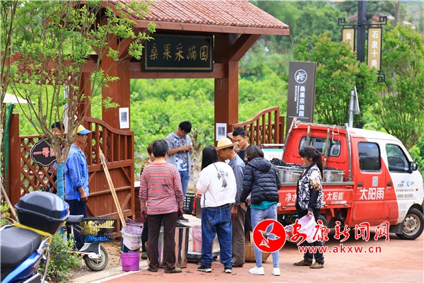 5月18日,石泉縣池河鎮明星村桑果采摘園門口,桑農們正在將新鮮采摘的桑葚進行統一稱重售賣。據了解,每日可采摘桑葚1000余斤,每斤售價3元,有效增加了蠶農收入,助推鄉村振興。 (圖文/汪龍濤 劉丹)TkN安康新聞網