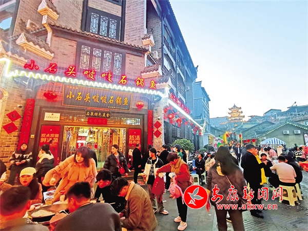 新春佳節(jié),石泉縣城主城區(qū)、秦巴老街、秦巴風(fēng)情園的燈籠燈光等節(jié)日氛圍營(yíng)造,把傳統(tǒng)非遺文化和春節(jié)燈謎燈會(huì)創(chuàng)意融合,烘托出濃濃年味。在漢江石泉古城、文化路餐飲街區(qū),游客們挑選著自己喜歡的小吃,烤魚(yú)、石鍋魚(yú)、火盆燒烤等特色餐飲門(mén)店更是賓朋滿(mǎn)座。大街小巷人頭攢動(dòng)、熱鬧非凡,賞燈的、打彩的、穿漢服拍照的、購(gòu)買(mǎi)當(dāng)?shù)靥禺a(chǎn)的、觀看體驗(yàn)民俗文化的游人絡(luò)繹不絕。