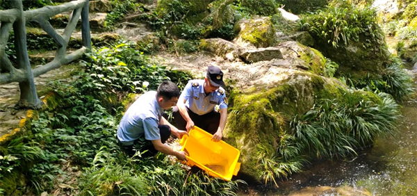 接到疑似“娃娃魚”的動物后,民警迅速聯系石泉縣農業農村局協助救助。經縣農業農村局工作人員比對確認,該動物正是“娃娃魚”,又名大鯢,屬國家二級重點保護野生動物。5月16日上午,民警聯合縣農業農村局工作人員,在一處植被資源豐富的水源地上游,將“娃娃魚”放生回歸大自然。