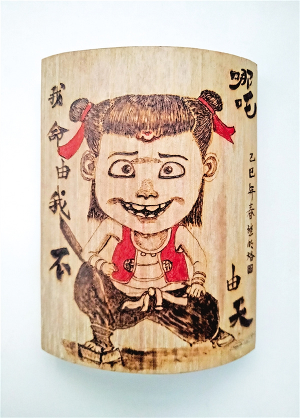 與此同時,在石泉,另一位非遺傳承人也不甘落后,用小小的烙鐵為大家勾勒出了哪吒、申公豹等鮮活的形象。退役軍人楊聰明,身為石泉烙畫非遺代表性傳承人,他微笑著向筆者分享創作初衷:“看到哪吒這個形象如此火爆,孩子也鬧著讓我畫一個,我便也嘗試著拿起了烙鐵。剛開始畫的時候比較隨性,畫出效果后再進行仔細修改。我深知,想要塑造出生動的形象,必須付出大量的時間和精力去精雕細琢。由此我也更加敬佩電影團隊,他們的付出和努力不言而喻。我們都是在用自己的方式,向中華國粹致敬!”