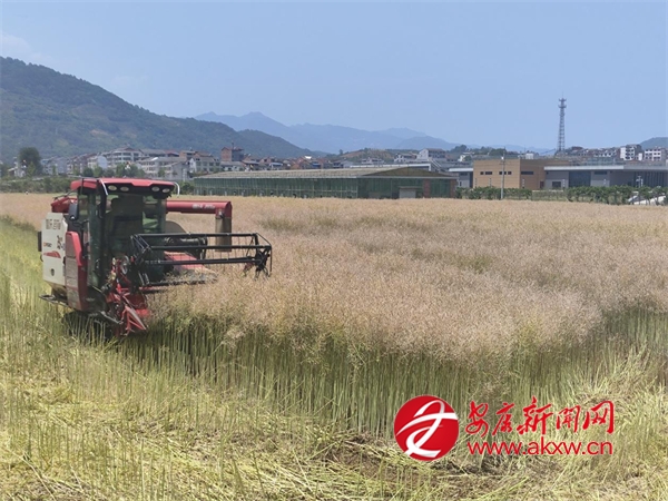5月19日,石泉縣池河鎮五愛村油菜種植基地里,大型聯合收割機正進行采收作業。池河鎮今年種植油菜8600畝,已全部成熟并有序組織搶收。當地大力推廣機械化作業,既提升采收效率,又能實現秸稈還田,有效解決焚燒秸稈問題。(通訊員 王朋) Z4e安康新聞網