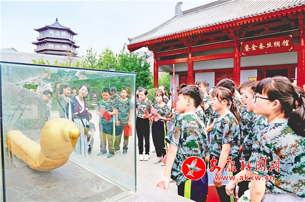 “請大家看,這就是放大了的鎏金銅蠶模型”周末假期,在石泉縣蠶桑博物館內(nèi),來自外地的游客們正在聽取蠶桑歷史文化的講解。