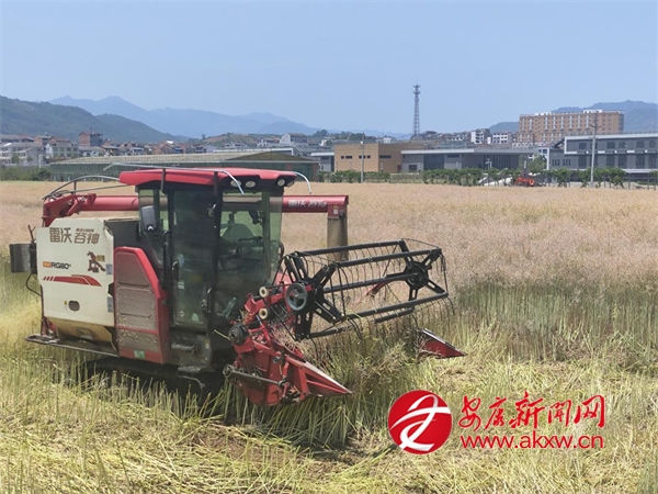 5月19日,石泉縣池河鎮五愛村油菜種植基地里,大型聯合收割機正進行采收作業。池河鎮今年種植油菜8600畝,已全部成熟并有序組織搶收。當地大力推廣機械化作業,既……