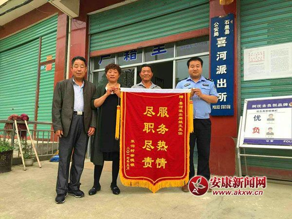 安康新聞網訊(通訊員 秦宏 周小魚)“服務熱情,盡職盡責”,5月17日上午,在石泉縣公安局喜河派出所,轄區雙溝村63歲的徐大爺,和家人一起,來到派出所將一面錦……