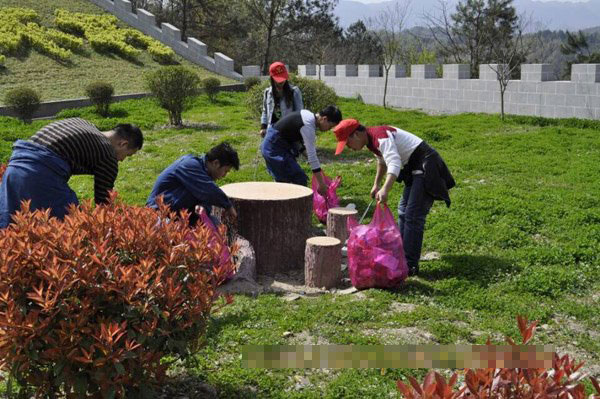 石泉志愿者清明前夕在烈士陵園開展環;顒