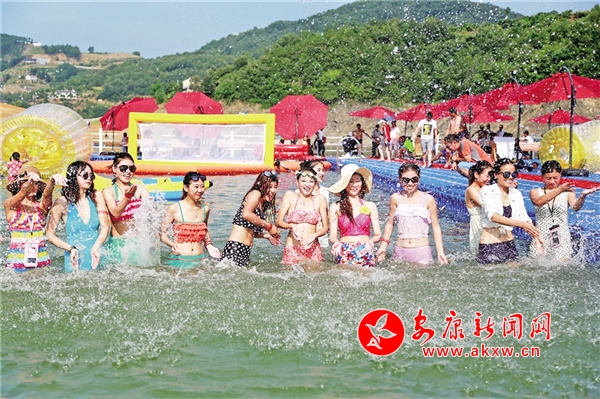 瀛湖的初夏,萬千變化。清晨,山和水還在夢中酣睡,一輪紅日從東面湖的盡頭沐浴而出,爬上山頭,霞光染紅了湖水,染紅了天空,湖面顯得更加清幽。傍晚,落日熔金,給群山鍍了一層金邊。此時,群鳥歸隱,群魚入眠。江風攪動湖水,湖面波光瀲滟,明麗動人。晚歸的漁民搖著一葉扁舟在寂靜的湖面上飄蕩,成為畫中最美的風景。習習涼風也吹散了白日的暑熱,舒適愜意,是休閑避暑的好去處。若遇雨天,天地間扯起絲絲銀線,水天一色,如煙如霧,籠罩在瀛湖上空。那若有若無輕煙一樣的雨霧輕盈地飄蕩在湖面上、群山間,翠屏山莊上的亭臺水榭、湖心碧螺島上的螺峰塔,全都沐浴在水蒙蒙的輕紗中,如夢似幻。“西塞山前白鷺飛,桃花流水鱖魚肥。青箬笠,綠蓑衣,斜風細雨不須歸。”此時,湖里的魚兒成群結(jié)隊地游出水面透氣,正是釣魚的最佳時機,湖邊不少垂釣愛好者正興致勃勃地冒雨釣魚,完全不顧雨已打濕了衣服。湖中,一葉葉漁舟和游船在雨中漫游,幽幽絲竹之聲從游船中飄出,像游走在煙雨迷蒙的江南水鄉(xiāng)。