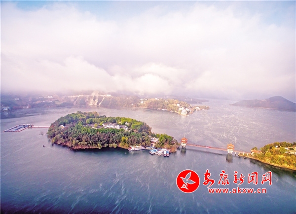 初冬的清晨,瀛湖風姿綽約、曼妙無比。起初湖水像是受熱不均的沸水,這里一點,那里一塊冒著熱騰騰的青煙,如絲如縷,在水面上輕盈地飄動、游離、撕扯,如慵懶自在的白云,把天空、湖水襯托得更藍。漸漸地,煙嵐越來越濃,越來越多,像化不開的乳汁,最后整個湖面煙波浩渺,小船和遠山若隱若現(xiàn),似人間童話仙境。這樣的山圍繞著這樣的水,這樣的水倒映著這樣的山,再加上湖中帆影點點,白鷺行行,小島林立,魚群結(jié)對,有種人在畫中游的感覺。深冬,總會落一兩場雪。那雪,極富層次。山下,素雪輕薄覆蓋;山上銀裝素裹,玉潔冰清。湖水則咕嘟咕嘟冒著熱氣,白綠相配,分外醒目,似丹青妙手繪制的山水畫,又似巧手繡娘精繡的刺繡,美輪美奐,惹人愛憐。