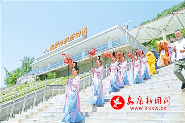 休閑勝地翠屏島,最大的亮點(diǎn)是玉清橋的彩虹瀑布,游客從橋下經(jīng)過,感受“瀛湖之水天上來”的曼妙,這也是瀛湖為游客送上的初夏第一絲清涼。橋頭幸福的天梯、鳥巢,成為排隊(duì)拍照的絕佳點(diǎn)位。運(yùn)動(dòng)場上,滾鐵環(huán)、射箭、投壺、打籃球,讓游客流連忘返。兒童樂園旁,微型爆米花機(jī)勾起了孩子們參與的興趣,彩繪激發(fā)了孩子們的繪畫熱情。瀛湖水上嘉年華,精彩刺激的水上項(xiàng)目帶給游客酣暢的體驗(yàn),游客紛紛直呼“過癮”!
