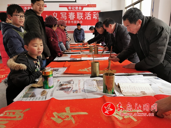 1月13日,鎮坪縣上竹鎮組織開展義寫春聯活動,為廣大群眾免費贈送春聯;顒蝇F場熱鬧非凡,處處洋溢著濃濃的年味,書法家們揮毫潑墨,熱情地為群眾書寫著一副副春聯,群眾們滿心歡喜的接過這些書法作品,臉上的笑容不自覺地流露出來。這些滿載著祝福的春聯,帶著揮別豬年,喜迎鼠年,辭舊迎新的美好祝愿,為即將來臨的春節增添了濃濃的節日氣氛。 (通訊員 黃俊 文/圖)zEM安康新聞網