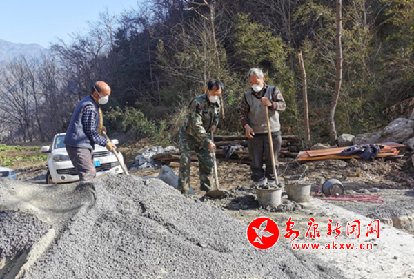 上竹鎮中心村肖家溝產業路復工,工人們戴著口罩做好防護,忙得熱火朝天。這條產業路是打通中心村桂花苗圃的“最后一公里”。