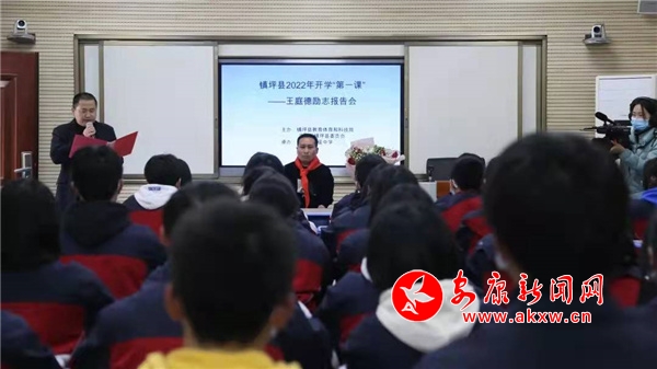 本網訊(通訊員 廖香妮)2月21日中午,由鎮坪縣教育體育和科技局、共青團鎮坪縣委員會主辦,鎮坪縣初級中學承辦的鎮坪縣2022年開學第一課——王庭德勵志報告會在鎮坪縣初級中學五樓會議室舉行,全縣15所中小學校5000多名學生線上收看活動直播,報告會由縣教育體育和科技局黨委書記、局長陸翔主持。4p5安康新聞網