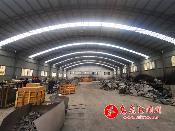 清明時節(jié),走在桃元村鴻利礦業(yè)加工廠里,機器轟鳴,叉車運輸貨物,工人鑿開板石的聲音此起彼伏,一派繁忙的景象。