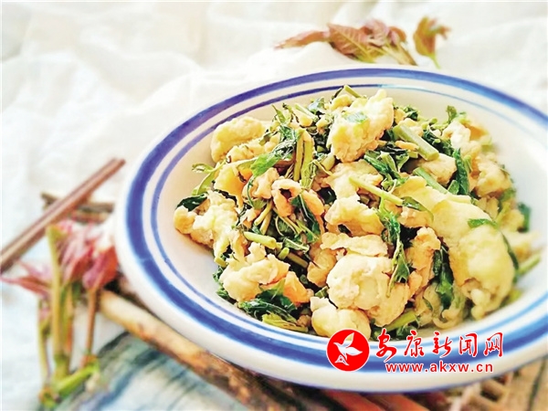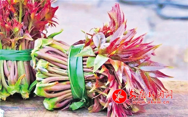 香椿 春天必吃的一道時令菜。香椿又叫做椿芽、春尖葉,香椿初發(fā)芽長葉的時候,掐香椿頭拿來做成香椿炒雞蛋吃,吃在嘴里脆嫩新鮮,味美爽口,齒頰俱芬。鎮(zhèn)坪的香椿響當當?shù)那嗄塾形叮t得發(fā)紫的葉芽,閃著點兒油光,看起來就很好吃。