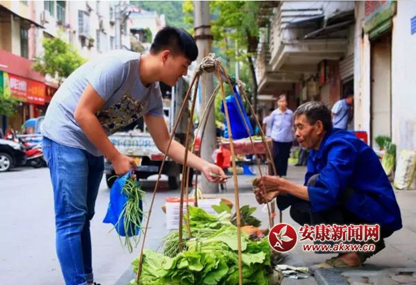 安康新聞網訊 清晨5點剛過,鎮坪縣城關鎮小河村彭征定老人就挑著一擔新鮮蔬菜走出了家門。豇豆、白菜、茄子、辣椒、黃瓜等各種新鮮時令蔬菜放在兩只破爛的竹筐中……