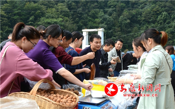 本網訊(通訊員 姚秋晨 黃志順) “給我稱10斤核桃,5斤干洋芋果果。”“土雞來兩只。”“買2個艾草枕頭。你這艾草足浴包咋賣的呢?”“雙節”前夕,紫陽縣毛壩鎮觀音村的集市熱鬧非凡。從來都是觀音村的群眾逢三六九到鎮上趕集,如今鎮上、縣上、市上的人都到村里買東西來了。