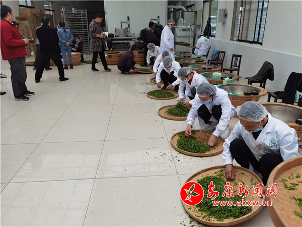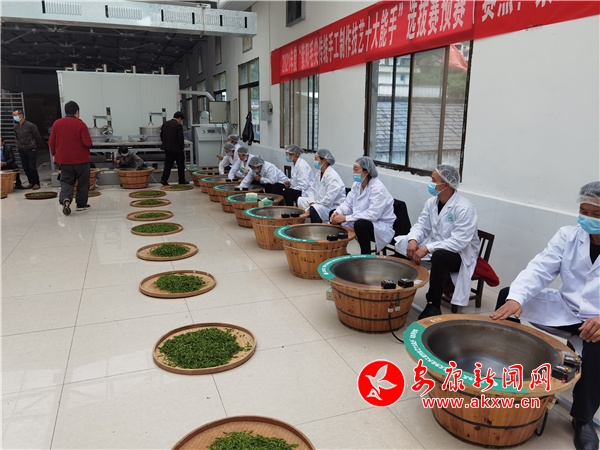 本網訊(通訊員 劉成軍)四月紫陽茶飄香,手工制茶競技忙。 4月7日,由紫陽縣總工會、紫陽縣農業農村局局、紫陽縣人力資源和社會保障局等單位聯合舉辦的2021年“紫陽毛尖傳統手工制作技藝十大能手”選拔賽預賽分賽場在高橋鎮關南春茶廠舉行。來自全鎮30多名手工制作技術能手紛紛同場競技,展現傳統手工制茶魅力。