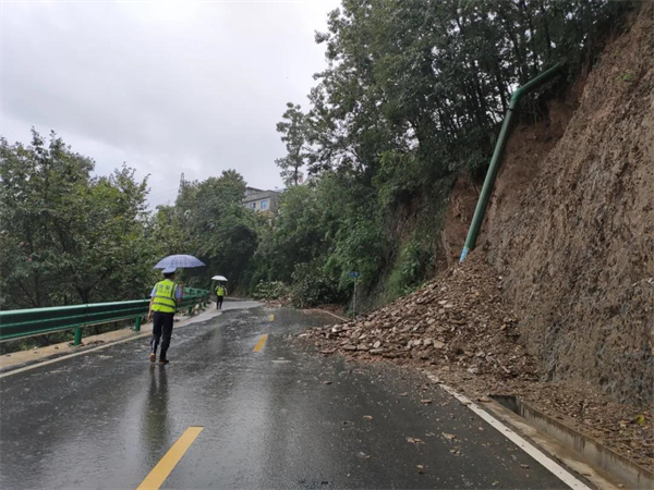 轄區S310省道有部分路段出現塌方、落石。51KM—53KM處有團霧;蒿漢路目前部分路段有垮方、落石,轄區其他各條道路均有積水、垮塌、泥石流造成通行受阻。D2r安康新聞網