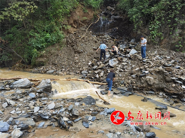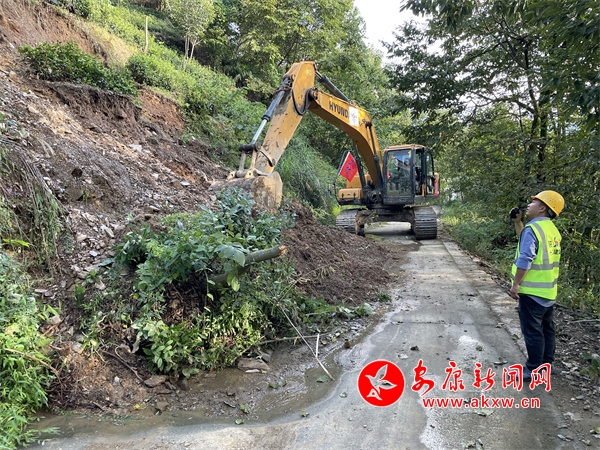 同時,新桃村組織青年黨員、群眾百姓等科學(xué)開展生產(chǎn)自救,進(jìn)行房屋清理、道路搶通、疏通清淤、險情排除等工作。為保障村民正常用水,村委會安排組織運(yùn)水大軍,修復(fù)受損管道,修繕蓄水池;挖土機(jī)挖通因嚴(yán)重滑坡而造成的受損路段后,群眾自發(fā)帶著鋤頭和鏟子,挖出一條簡易小道,方便救災(zāi)人員通行。