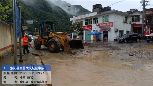 紫陽桑樹溝橋頭因大雨沖刷,淤泥鋪滿道路,現正在清理,請過往車輛減速慢行。