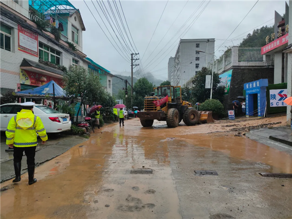王家河村級道路因山體滑坡,路面積水嚴重,目前該路段已實施交通管制,請過往車輛不要強行涉險通過,服從現場工作人員的指揮。