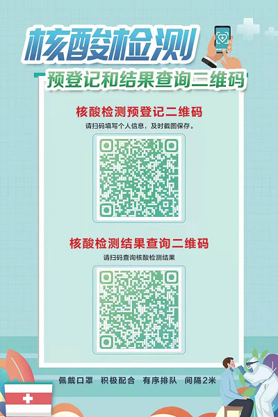 (二)請所有居民根據(jù)村(社區(qū))組織安排,攜帶身份證等有效證件,提前注冊準(zhǔn)備“核酸檢測預(yù)登記和結(jié)果查詢二維碼”小程序(見附件),未使用智能手機(jī)的由家人代為填報注冊,有序前往指定采樣點進(jìn)行采樣,確保不漏一戶一人。