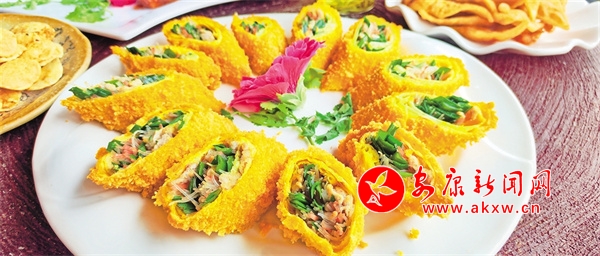采風團的第一站,來到了蒿坪鎮雙星社區的聚福山莊,雙星社區是“十二五”期間建設的移民搬遷社區,因為人口聚集,村民王益軍在“十三五”期間搶抓蒿坪鎮發展農旅產業的機遇,開辦了聚福山莊農家樂。通過當地政府聚力打造“紫陽味道”品牌,聚福山莊開發出一系列具有當地特色的美食小吃,用佳肴留住客人的腳步與味蕾。“香酥羊肉餅、炸響鈴、蒸米蒿饃、農家香酥里脊卷、油渣餅都是我們這的特色,原材料土生土長、綠色健康,客人吃了都說好。”在大廚汪顯峰簡單直白的介紹下,一行人食指大動,用親身體驗言表出真實感受。“這個蒸米蒿饃很有特色,小時候物資匱乏,只好用面粉拌著山上長的米蒿用來蒸饃吃,現在生活好了,再吃蒿子饃真是別有一番風味,希望當地政府能助力農民、農企深挖本土資源特色,將小風味打造成大產業。”作家、書法家蔣典軍看到眼前的小吃,發出了滿心感慨。